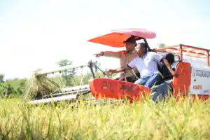 Wakil Menteri Pertanian (Wamentan) Sudaryono saat kunjungan kerja ke Desa Kendal, Kecamatan Kendal, Kabupaten Ngawi, Jawa Timur, pada 18 Juni 2025, dalam rangka panen padi bersama petani setempat. Wamentan mendorong agar panen padi bisa tujuh kali dalam dua tahun guna memperkuat ketahanan pangan nasional. (Foto : Kementan)