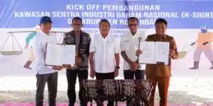 Kawasan Sentra Industri Garam Nasional (K-SIGN) di Desa Matasio, Kabupaten Rote Ndao, Provinsi Nusa Tenggara Timur (NTT), mulai dibangun pada 3 Juni 2025. Menteri Kelautan dan Perikanan Sakti Wahyu Trenggono menyatakan sentra industri garam itu bisa menyerap 26 ribu tenaga kerja. (Foto : KKP)